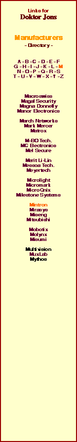 | Address 1 Address 2 City State / Region Country Zip / Postcode Website E-mail Address Telephone No. Fax No. Year Business started Overseas Offices Products Services Comments | | No 123, Wu Kung 1 Rd., Wu-Ku Industrial Park, Taipei Hsien Taiwan (248) http://www.mintron.com service@mintron.com 886-2-2299-0277 886-2-2298-9375 CCTV Cameras