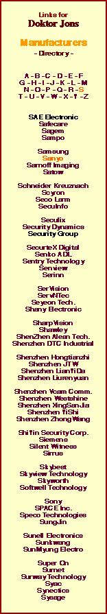 | Address 1 Address 2 City State / Region Country Zip / Postcode Website E-mail Address Telephone No. Fax No. Year Business started Overseas Offices Products Services Comments | | 5-5, Keihan-hondori 2-chome, Moriguchi-shi, Osaka Japan 570-8677 http://www.sanyosecurity.com +81-6-6991-1181 +81-6-6991-5411 United Kingdom, U.S.A. Complete range of CCTV products inc:- Cameras, Monitors, Multiplexers, VCR, DVR, Control