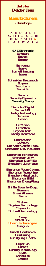| | | | | | 200 New Highway Amityville New York U.S.A. NY 11701 http://www.specotech.com info@specotech.com +1 (631) 957 8700 +1 (631) 957 9142 A wide range of CCTV products