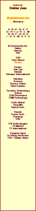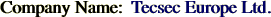 | Address 1 Address 2 City State / Region Country Zip / Postcode Website E-mail Address Telephone No. Fax No. Year Business started Overseas Offices Products Services Comments | | 7 Pavillion Industrial Estate, Pontnewynydd, Pontypool, Torfaen Gwent Wales NP4 6NF http://www.tecseceurope.co.uk enquiries@tecseceurope.co.uk +44 (0)1495 752882 +44 (0)1495 751840 Complete range of CCTV equipment, inc. Housings, Cameras, Monitors, Control, Transmission, IR,